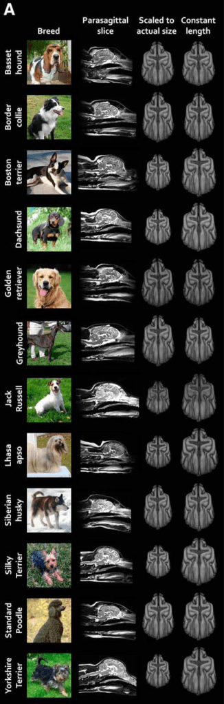 Per diverse centinaia di anni, gli esseri umani hanno allevato selettivamente cani per esprimere specifiche caratteristiche fisiche e comportamentali. Erin Hecht e colleghi hanno studiato gli effetti di questa pressione selettiva sulla struttura del cervello analizzando le scansioni di risonanza magnetica di 33 razze di cani. Il team di ricerca ha osservato un’ampia variazione nella struttura del cervello che non era semplicemente correlata alle dimensioni del corpo o alla forma della testa.