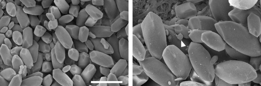 Allo stato attuale, sembra probabile che gli otoconi vadano incontro a processi di degenerazione e ricambio nel corso della vita dell’animale, con dominanza dei primi. Se gli otoconi degenerano nel corso della vita, questo potrebbe spiegare perché l’equilibrio peggiora inevitabilmente con il tempo, e anche perché dopo un trauma cranico non viene mai riacquistata completamente la precedente capacità di mantenere l’equilibrio. D’altra parte, è stato stimato che i topi possono sopportare la perdita di circa l’80% della loro otoconi prima di sviluppare evidenti problemi di equilibrio. Gli otoconi sono costituiti da carbonato di calcio unito ad una matrice proteica (formata da una proteina chiamata otoconina-90 nei Mammiferi e negli Uccelli) che non ha solo funzione strutturale ma è anche coinvolta nella secrezione del calcio stesso. Gli studi basati sulla marcatura del calcio suggeriscono che occorrano mesi per il turnover. Gli otoconi non sono “incorporati” nella membrana otolitica, ma costituiscono uno strato cristallino separato sulla parte superiore della membrana. Hanno dimensioni medie di circa 10 micron.